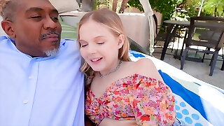 Part 2 - He dare to rub my pussy! He took off my cutoffs and left me in my underwear and demonstrated my pussy to the camera.