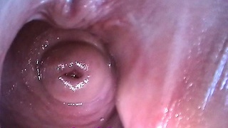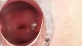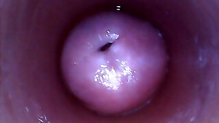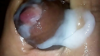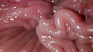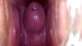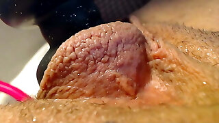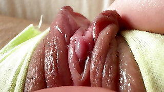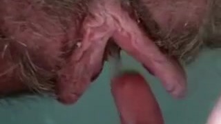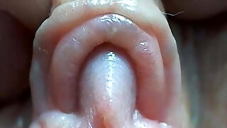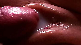 Slow-mo. Extremely close-up. Finished in between her twat lips