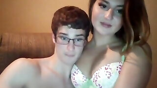 Naughty stepsister massages her pussy on stepbrothers firm dick, do blowjob and then screws him deep till huge creampie!