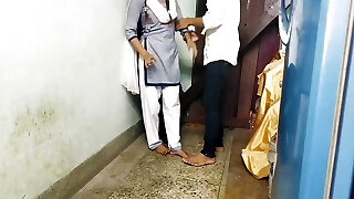 Hot College-aged yers old Indian college schoolgirl and teacher fucking in doggy style in clear Hindi audio