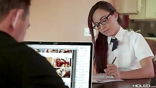 curvy procace agente immobiliare si trasforma in un lavato-up slut e lascia il suo cliente cazzo tutti i suoi buchi per compiacere lui