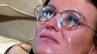 cougar con grandi tette e occhiali che soffia e ottenere manicotto mangiato durante il rapporto