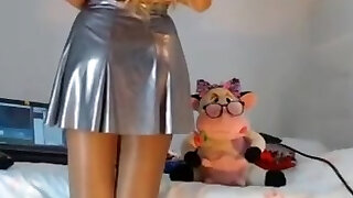 Hot vinyl latex leather Camgirl in Fake Leather