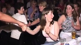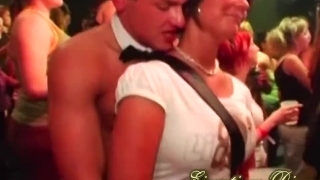 Party girls suck and pound male strippers in public