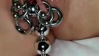 nippleringlover hot sexy milf plunging 12mm heavy metal rings in extreme spread pierced nipples 8mm rings in pussy lips