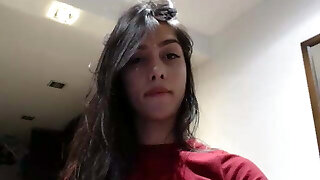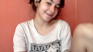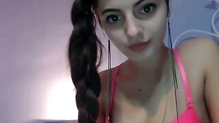 19 year old huge-chested webcam girl with innocent face touches her big natural ti